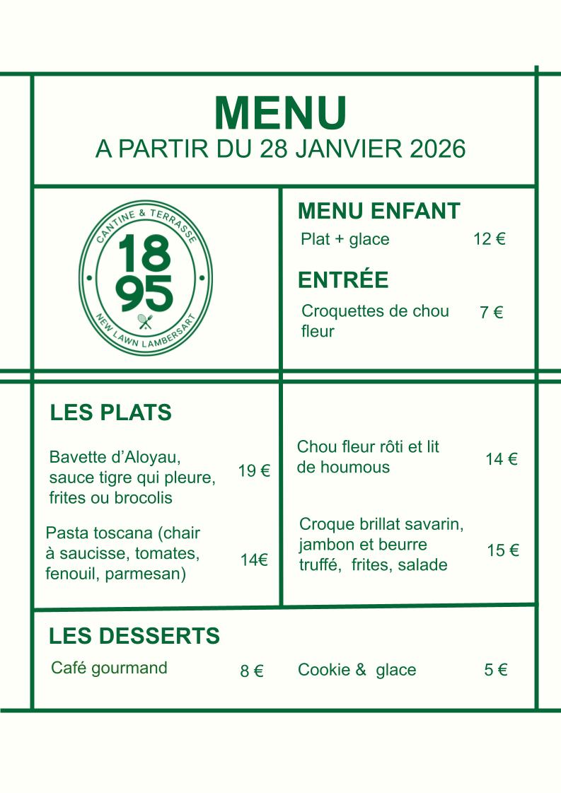 Bienvenue au 1895 – Club House du New Lawn, un lieu unique au cœur d’un club de tennis historique. Nous vous accueillons dans l’ambiance élégante de la maison du club, autour d’une cuisine généreuse et conviviale, élaborée à partir de produits frais et de saison. Que ce soit pour un déjeuner entre amis, un dîner en famille ou un moment de détente après le sport, notre table est ouverte à tous.